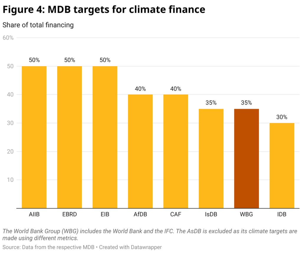 يقضي بتنفيذ عملية نقل منظمة للموارد المالية المتوافرة من تمويل التنمية ومحاربة الفقر إلى تمويل المناخ. وقد بدأت خجولة في خطة العمل الأولى بشأن تغيّر المناخ (2015-2020). وتصاعدت في الخطة الثانية (2021-2025). وشهد العام 2021 وحده تقديم حوالي 26 مليار لتمويل الأنشطة المناخية وأنشطة التكيف. أي ما يعادل ثلثي ما قدمته كل المؤسسات متعددة الأطراف. وتستهدف الخطة تخصيص 35 في المئة من التمويل للأنشطة المناخية.